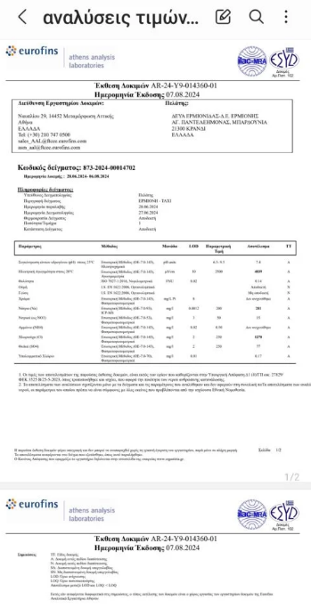 Παρακαλούμε να ενημερώσετε άμεσα τους συμπολίτες μας, όπως έχετε υποχρέωση, από ποιες γεωτρήσεις τροφοδοτείται την περίοδο αυτή η δεξαμενή της Ερμιόνης, καθώς και τις σημερινές τιμές των παραμέτρων του νερού της Ερμιόνης, αφού οι μετρήσεις ιδιωτών εμφανίζουν υπερβολική επιβάρυνση της αγωγιμότητας, γεγονός που δεν δικαιολογείται να συμβαίνει τον χειμώνα.