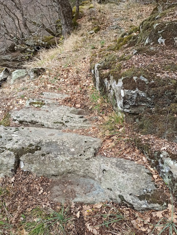 Εντούτοις, ο ξεχασμένος αλατόδρομος έχει αφήσει παντού τα σημάδια του. Ορισμένα τμήματα -υπολείμματα αυτού του παλαιού μονοπατιού σώζονται ακόμη. Όποιος τα αναγνωρίζει, τα βλέπει… καλά…. Βλέπει την δραστηριότητα του παρελθόντος μέσα από απομεινάρια που κρύβει ο τόπος. Τα βλέπει στα πέτρινα εναπομείναντα τμήματα του «Αλατόδρομου» (Φωτ. 6).