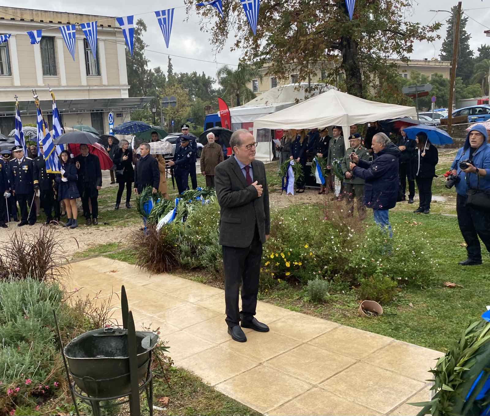 Ακολούθησε επιμνημόσυνη δέηση και καταθέσεις στεφανιών στον ανδριάντα του Στάικου Σταϊκόπουλου, ενώ οι ιδιαίτερα δυσμενείς καιρικές συνθήκες υποχρέωσαν την ακύρωση της προγραμματισμένης μαθητικής και στρατιωτικής παρέλασης.