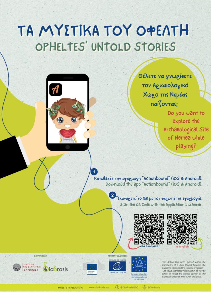 *Το ψηφιακό παιχνίδι «Τα μυστικά του Οφέλτη» δημιουργήθηκε από την Diadrasis και την Εφορεία Αρχαιοτήτων Κορινθίας και χρηματοδοτήθηκε από το Συμβούλιο της Ευρώπης και την Ευρωπαϊκή Ένωση στο πλαίσιο της κοινής δράσης των Ευρωπαϊκών Ημερών Πολιτιστικής Κληρονομιάς.