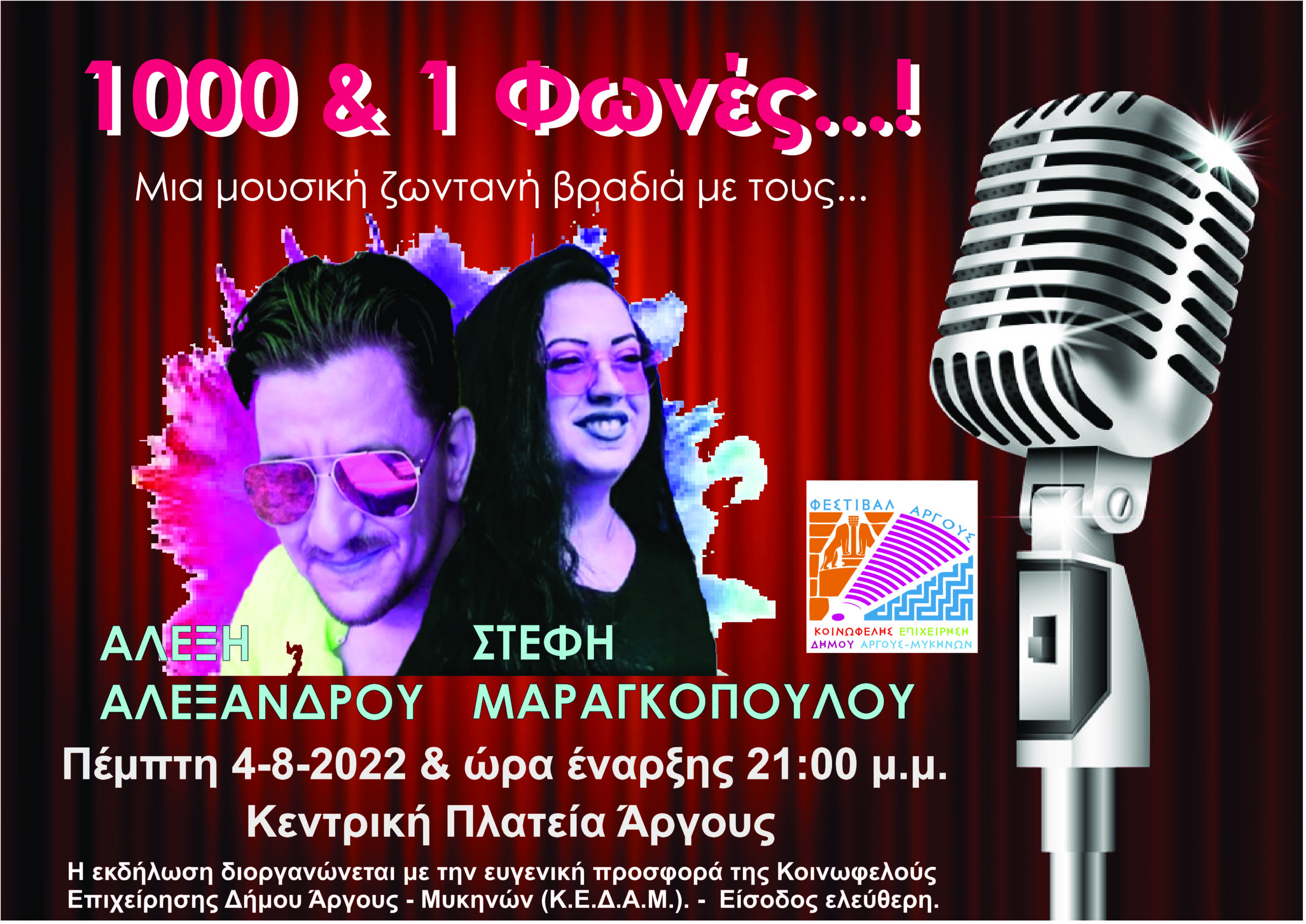 Και αυτή την εβδομάδα ο Πρόεδρος της Κοινωφελούς Επιχείρησης του Δήμου Άργους-Μυκηνών, Παναγιώτης Σκούφης, υπόσχεται όμορφες βραδιές ψυχαγωγίας με τις πολιτιστικές εκδηλώσεις που θα συντελεστούν στο Άργος και τις Κοινότητες.