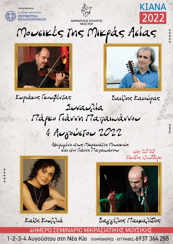 Στις 4 Αυγούστου στο πάρκο Γιάννη Παπαϊωάννου όλοι μαζί οι μουσικοί των σεμιναρίων θα δώσουν μια συναυλία αφιερωμένη στην μικρασιατική μουσική, με ελεύθερη είσοδο.