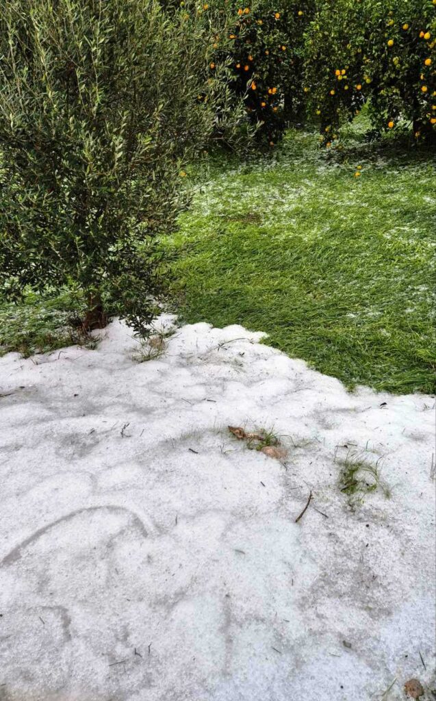 Η έντονη χαλαζόπτωση που σημειώθηκε σήμερα το πρωί σε χωριά του Δήμου Άργους – Μυκηνών (Κουτσοπόδι, Πανόραμα, Σταθέικα, Φίχτια, Μοναστηράκι, Μυκήνες, Μπόρσα, κ.α.) προκάλεσε σοβαρές ζημιές στις καλλιέργειες ελιάς, εσπεριδοειδών, ροδιών και κηπευτικών, τη στιγμή μάλιστα που βρίσκονται στο κρίσιμο στάδιο της συγκομιδής.