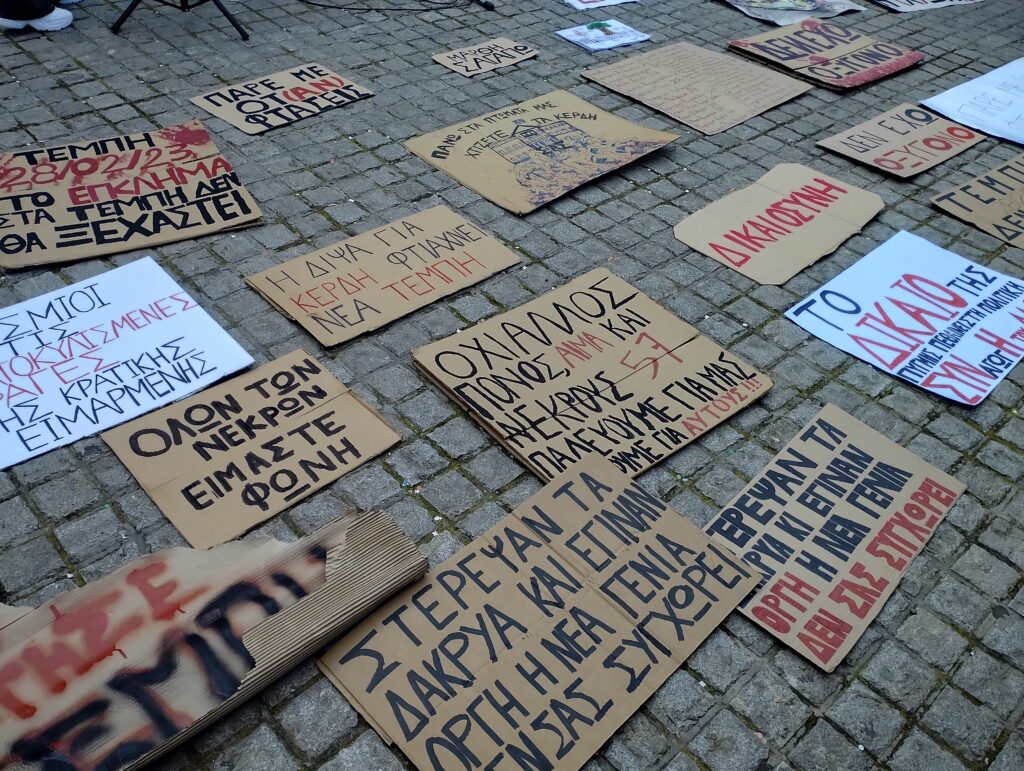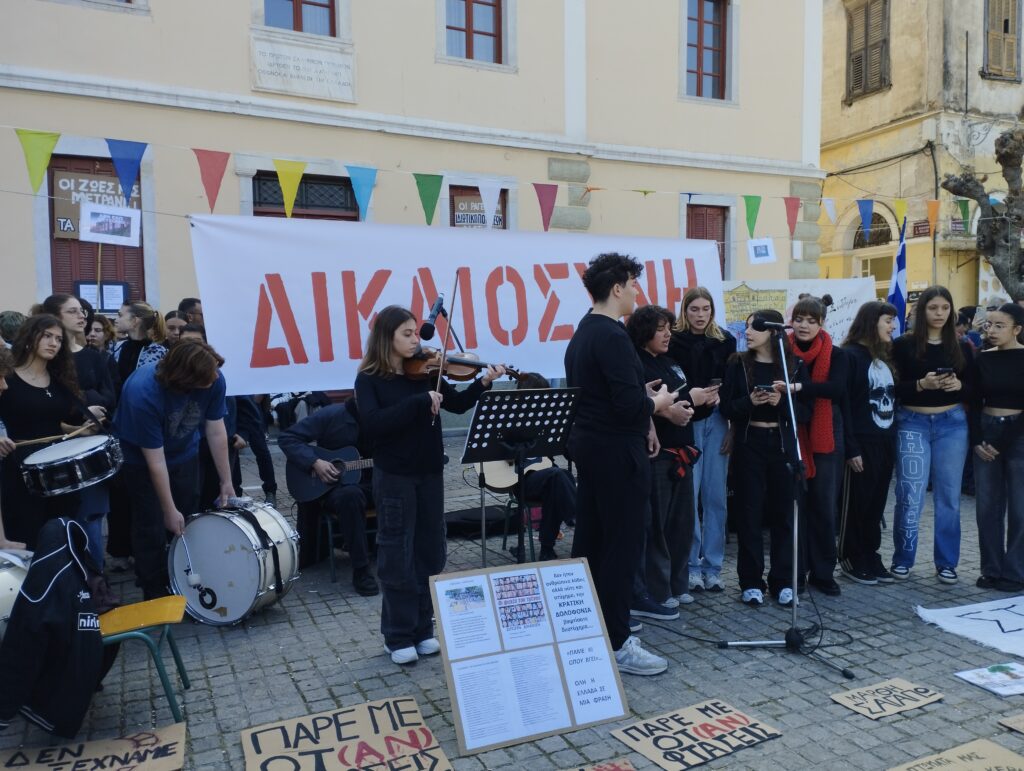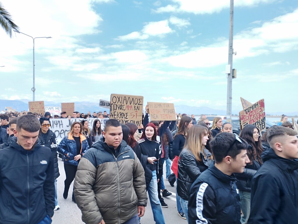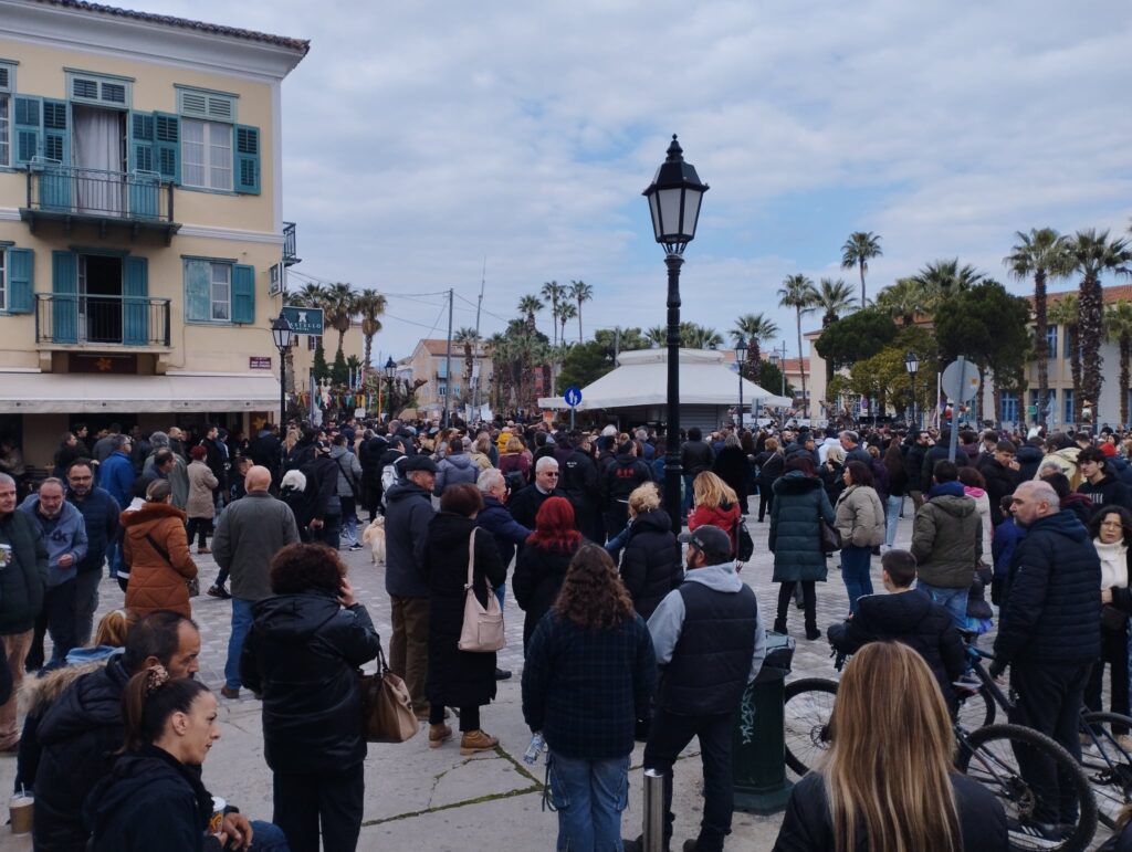 Χιλιάδες κόσμου πλημμύρισαν το κέντρο του Ναυπλίου διαδηλώνοντας για τους νεκρούς από τη σύγκρουση των τρένων, πριν δυο χρόνια στα Τέμπη.
