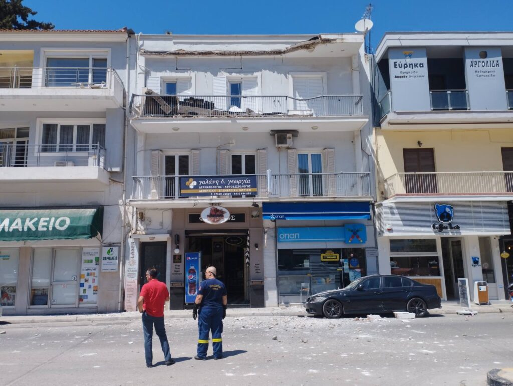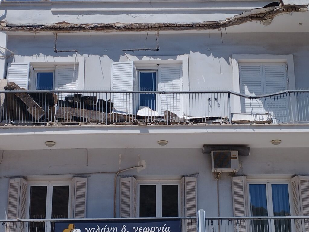 ΣΟΚ: Κατέρρευσε στέγαστρο πολυκατοικίας στο Ναύπλιο χωρίς να υπάρξουν θύματα (ΦΩΤΟ)