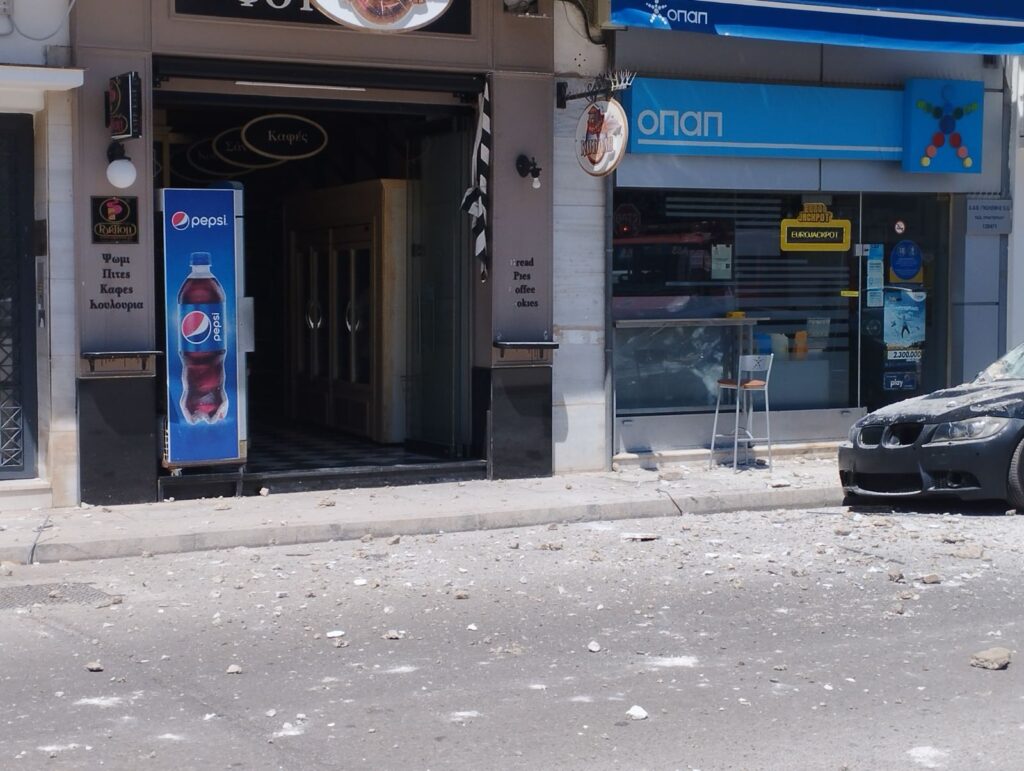 Την ώρα της κατάρρευσης ευτυχώς δεν διερχόταν πεζός και το μόνο “θύμα” ήταν ένα παρκαρισμένο αυτοκίνητο χωρίς όμως και αυτό να υποστεί ιδιαίτερα βαριές ζημιές. Υπάρχουν φόβοι και για νέα κατάρρευση, αυτή τη φορά του μπαλκονιού του β’ ορόφου καθώς έχει πάρει κλίση από τα φορτία των υλικών που έπεσαν. Στον τόπο του ατυχήματος έσπευσε  η Πυροσβεστική που απέκλεισε τον δρόμο ώστε να μην κινδυνεύσουν περαστικοί και οχήματα. Για τις αιτίες που προκάλεσαν την κατάρρευση του στεγάστρου διεξάγονται έρευνες.