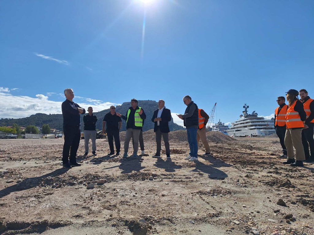 Ο Περιφερειάρχης Δημήτρης Πτωχός επισκέφθηκε και το σημείο όπου προχωρούν οι διαδικασίες για το μεγάλο έργο της Μαρίνας του Ναυπλίου, προϋπολογισμού 25 εκατομμυρίων ευρώ, το οποίο υλοποιείται μέσω Σύμπραξης Δημόσιου και Ιδιωτικού Τομέα (ΣΔΙΤ). Με την ολοκλήρωσή της, η Μαρίνα θα αναμορφώσει ριζικά την παραλιακή ζώνη, προσδίδοντας στο Ναύπλιο νέα αναπτυξιακή ώθηση και αναβαθμίζοντας το προφίλ της πόλης ως διεθνούς προορισμού υψηλών προδιαγραφών.