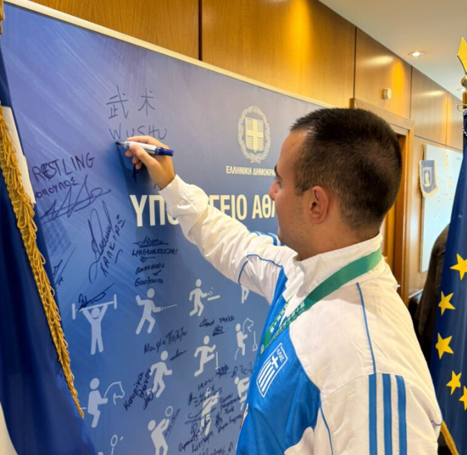 Την εθνική ομάδα Κουνγκ Φου, η οποία συμμετείχε με πολύ μεγάλη επιτυχία στο Παγκόσμιο Πρωτάθλημα, που έγινε στην πόλη Εμεϊσάν της Κίνας, υποδέχθηκε στο γραφείο του ο αναπληρωτής υπουργός Αθλητισμού, Γιάννης Βρούτσης. Η ελληνική αποστολή επέστρεψε από την Κίνα με συνολική συγκομιδή τεσσάρων χρυσών, τριών ασημένιων και επτά χάλκινων μεταλλίων, καταλαμβάνοντας στη γενική κατάταξη την έβδομη θέση, μεταξύ 54 χωρών που συμμετείχαν.