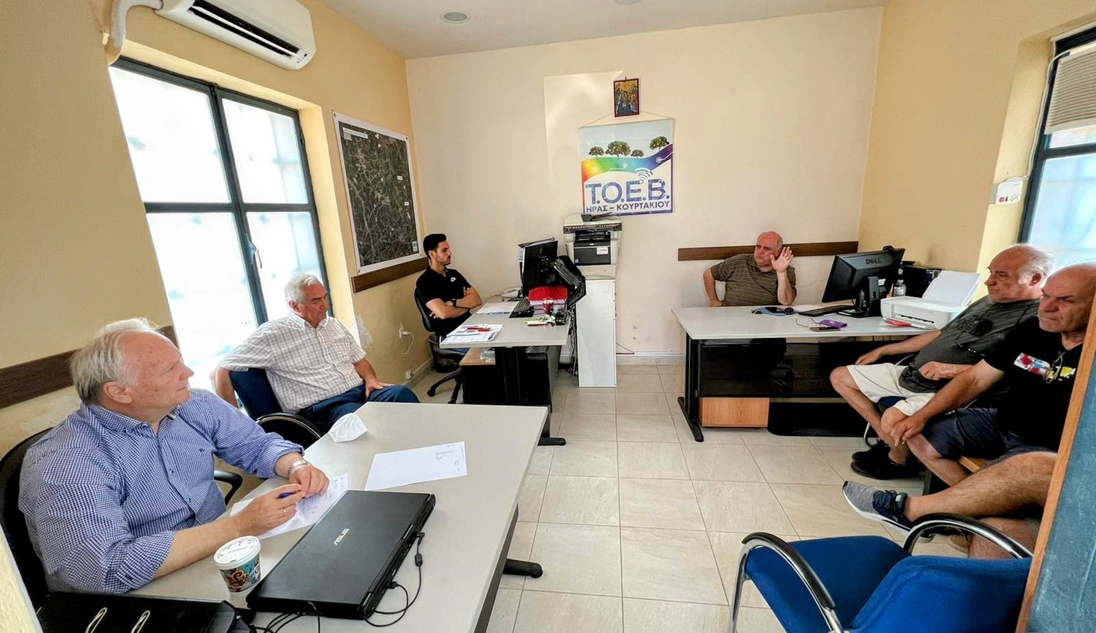 Συνάντηση εργασίας είχε σήμεα το διοικητικό συμβούλιο του ΤΟΕΒ ΗΡΑΣ-ΚΟΥΡΤΑΚΙΟΥ με τον Βουλευτή της Νέας Δημοκρατίας Γιάννη Ανδριανό προκειμένου να τον ενημερώσει τότος για τον τρόπο λειτουργίας τους όσο και για την προσπάθεια που γίνεται ώστε να να επεκτείνουν τα αρδευτικά δίκτυα προς Ήρα και να κατασκευαστεί και Φωτοβολταϊκό για netmeeting! Στην σχεττική ενημερωτική ανάρτηση αναφέρουν τα ακόλουθα :