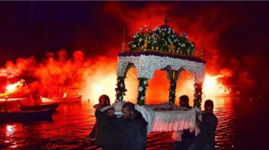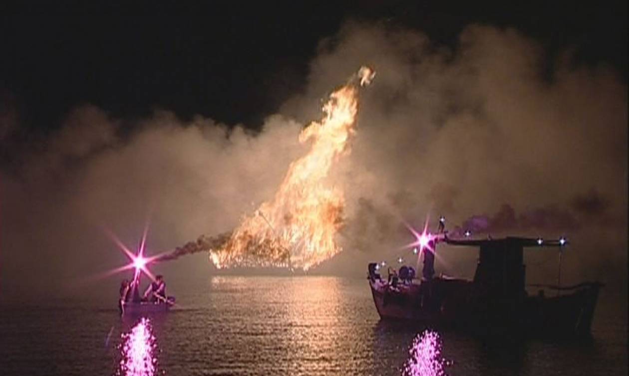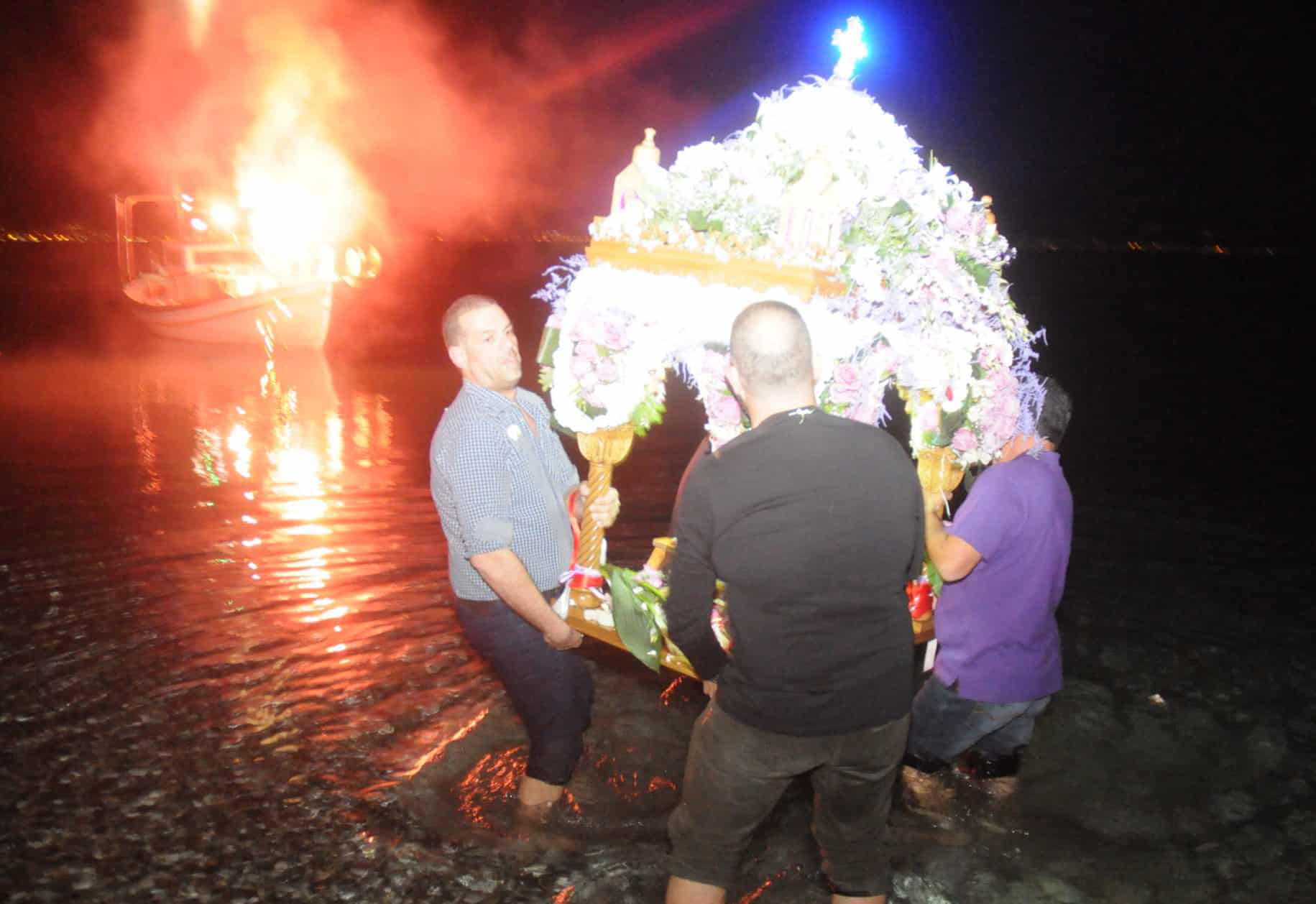 Κατόπιν ακολουθεί η είσοδός του στην θάλασσα και η περιφορά του μέσα στο νερό, ενώ ταυτόχρονα ανάβουν βεγγαλικά.