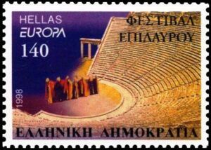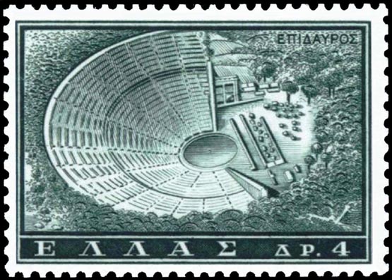 Στο πλαίσιο του θεσμού των γραμματοσήμων “Europa”, με κοινό θέμα για τις ευρωπαϊκές χώρες τα «Σύγχρονα και Αρχαία Θέατρα», η Ελλάδα εξέδωσε γραμματόσημο που απεικονίζει το θέατρο της Επιδαύρου (κλάση 100 δραχμών).