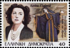 Κατίνα Παξινού (1987): Εκδόθηκε αναμνηστικό γραμματόσημο για τα 14 χρόνια από τον θάνατό της. Η Παξινού ήταν η πρώτη που ερμήνευσε στην Επίδαυρο (Ηλέκτρα, 1938).