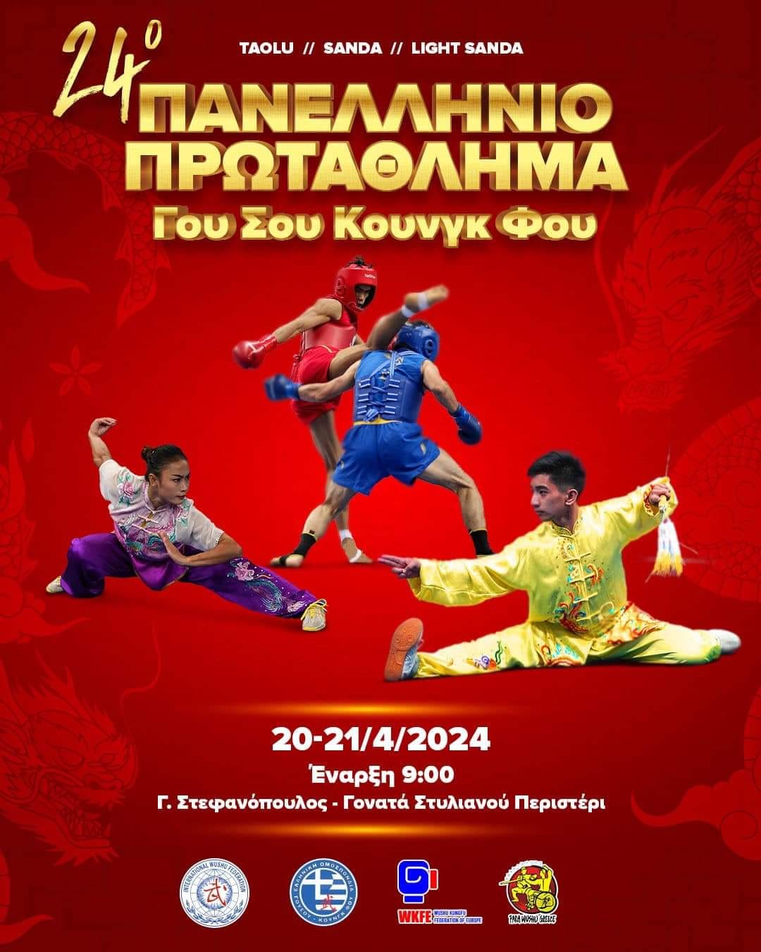Με 31 αθλητές και αθλήτριες θα συμμετέχει ο σύλλογος μας στο 24ο πανελλήνιο πρωτάθλημα ΓουΣού Κουνγκ φού που θα πραγματοποιηθεί το Σαββατοκύριακο 20 και 21 Απριλίου στο κλειστό γυμναστήριο «Γεώργιος Στεφανόπουλος» στο Περιστέρι.