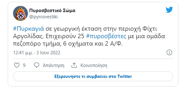 Φωτιά ξέσπασε λίγο πριν τη 1.00 το μεσημέρι της Παρασκευής, σε γεωργική έκταση στα Φίχτια Αργολίδας.