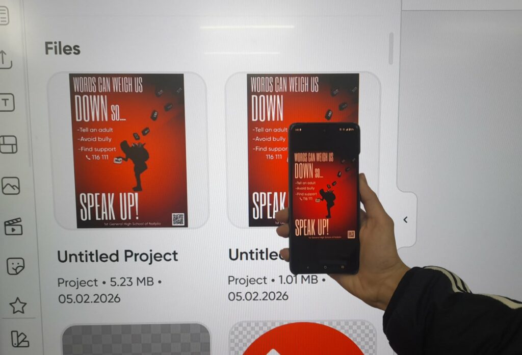 Ιδιαίτερα δημιουργική στιγμή των δράσεων αποτέλεσε η κατασκευή αφισών από τους μαθητές, μέσα από τις οποίες αποτύπωσαν δυνατά μηνύματα κατά της βίας και υπέρ του σεβασμού, της αποδοχής της διαφορετικότητας, της φιλίας και της αλληλεγγύης. Οι αφίσες αυτές αποτέλεσαν έναν συμβολικό αλλά και ουσιαστικό τρόπο έκφρασης της επιθυμίας των μαθητών για ένα σχολείο όπου όλοι αισθάνονται ασφαλείς, αποδεκτοί και ισότιμοι.