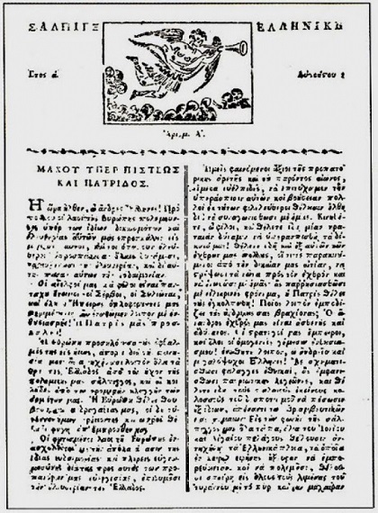 1821: Εκδίδεται στην Καλαμάτα η πρώτη ελληνική εφημερίδα υπό τον τίτλο «Ελληνική Σάλπιγξ».