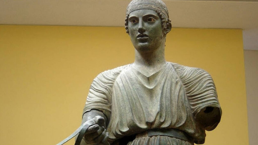 1896: Ανακαλύπτεται στους Δελφούς το περίφημο άγαλμα του Ηνιόχου.