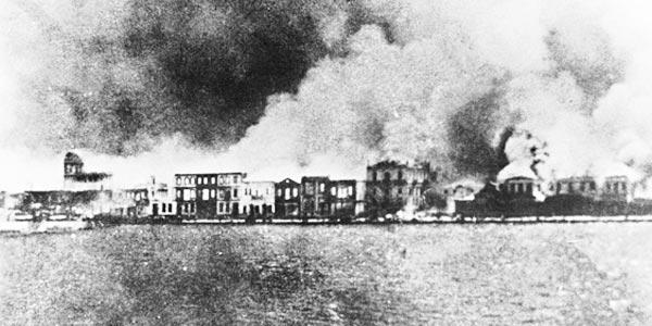 1922: Με προκήρυξή του, ο Μουσταφά Κεμάλ καλεί όλους τους υπηρετήσαντες στον Ελληνικό Στρατό να παραδοθούν μέσα σε 24 ώρες. Οι δικαστικοί και οι υπάλληλοι που υπηρετούσαν στη Μικρά Ασία επιστρέφουν στην Αθήνα. Την ίδια μέρα η ελληνική και η αρμενική συνοικία της Σμύρνης καταστρέφονται από πυρκαγιά που σκόπιμα βάζουν οι τουρκικές Αρχές της πόλης. Η 11η Μεραρχία, υπό τον υποστράτηγο Νικόλαο Κλαδά, αφού κυκλώνεται στην περιοχή των Μουδανιών, παραδίδεται στους Τούρκους.