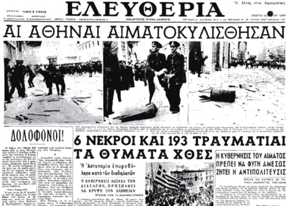 1956: Μαχητικό συλλαλητήριο υπέρ της Κύπρου που διοργανώνεται στην Αθήνα, καταλήγει σε συγκρούσεις με την αστυνομία. Τέσσερις διαδηλωτές και ένας αστυνομικός διευθυντής σκοτώνονται και 265 άτομα τραυματίζονται, εκ των οποίων οι 165 από σφαίρες.