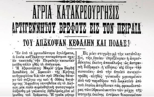 1908: Μία από τις πιο φρικτές ανθρωποκτονίες που έχουν καταγραφεί στα ελληνικά εγκληματολογικά χρονικά, αποκαλύπτεται στον Πειραιά. Η Μαρία Παπαδάκη τεμαχίζει το εκτός γάμου παιδί της λεχούσας κόρης της. Βράζει τα κομμάτια και τα πετά.
