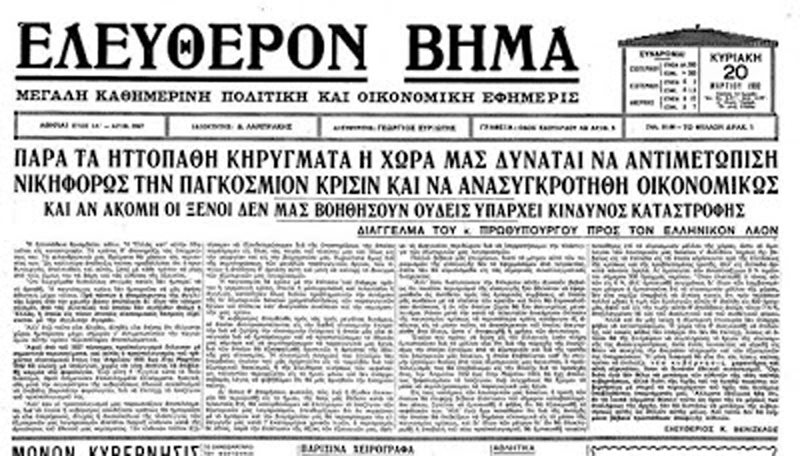 1932: Η Ελλάδα κηρύσσει χρεοστάσιο. Αποτελεί την ύστατη προσπάθεια από την κυβέρνηση Ελευθερίου Βενιζέλου για τη διάσωση της δραχμής.