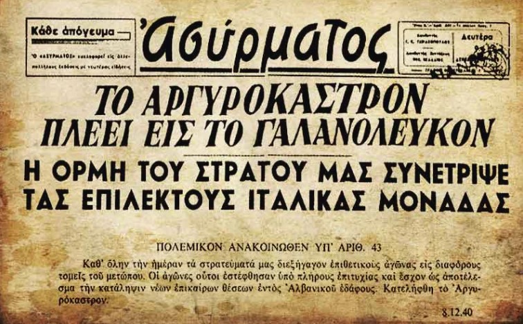 1940: Το χαρμόσυνο άγγελμα της απελευθέρωσης του Αργυροκάστρου μεταδίδεται σε ολόκληρη την Ελλάδα με κωδωνοκρουσίες.