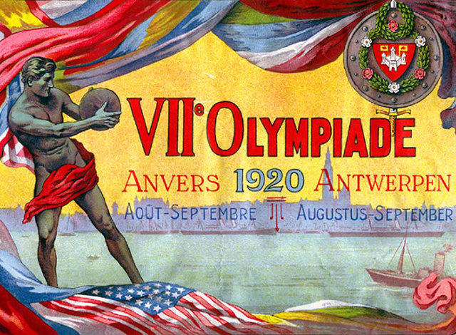 1920: Έναρξη των 7ων Ολυμπιακών Αγώνων της Αμβέρσας (οι 6οι δεν έγιναν ποτέ λόγω πολέμου). Πρώτη εμφάνιση της σημαίας με τους πέντε ολυμπιακούς κύκλους και πρώτη απαγγελία του Ολυμπιακού Ύμνου. Μελανό σημείο της διοργάνωσης είναι ο αποκλεισμός των κρατών που ηττήθηκαν στον πόλεμο (Γερμανία, Αυστρία, Ουγγαρία, Βουλγαρία), καθώς το πνεύμα των αγώνων δεν θέλει τη διάκριση λόγω πολιτικών διαφορών.