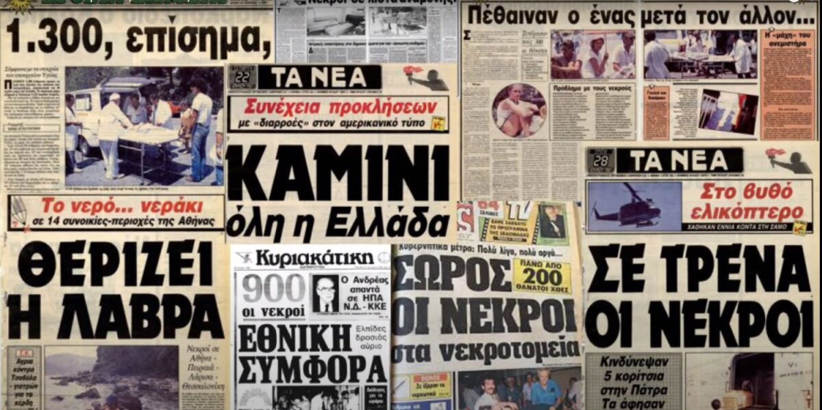1987: Πρωτοφανής καύσωνας (συνδυασμός υψηλής θερμοκρασίας και υγρασίας) πλήττει την Ελλάδα. Η θερμοκρασία θα βρίσκεται σταθερά πάνω από τους 40 βαθμούς Κελσίου για αρκετές ακόμη ημέρες. Σε 1.300 θα φτάσει ο αριθμός των νεκρών βάσει της επίσημης εκτίμησης (1.115 στην Αθήνα).