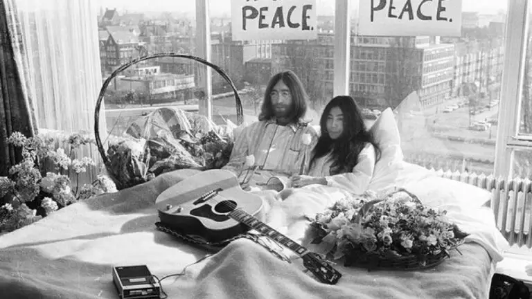 1969: Ο Τζον Λένον και η Γιόκο Όνο ηχογραφούν το «Give Peace a Chance», κατά τη διάρκεια του δεύτερου Bed-In για την Ειρήνη.