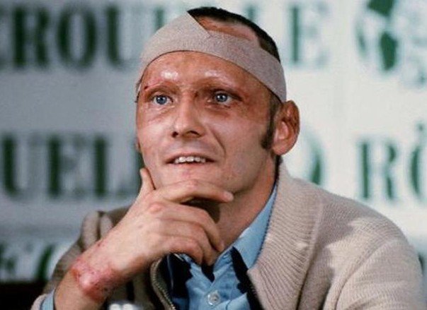 1976: Ο Νίκι Λάουντα τραυματίζεται σοβαρά στην πίστα του Νίρνμπουργκρινγκ, όταν το αυτοκίνητό του προσκρούει με δύναμη στις μπαριέρες και αναφλέγεται. Ο Αυστριακός οδηγός διασώζεται με σοβαρά εγκαύματα, που θα αφήσουν σημάδια στο πρόσωπό του για όλη του τη ζωή.