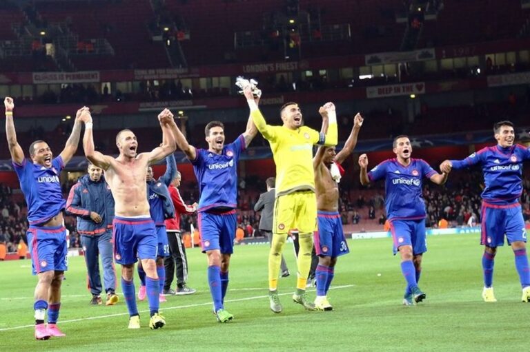 2015: Μεγάλη νίκη πανηγυρίζει ο Ολυμπιακός στο Λονδίνο με 2-3 επί της Άρσεναλ, η οποία είναι η πρώτη των «ερυθρολεύκων» στην Αγγλία για το Champions League.