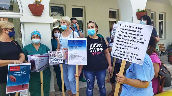 2021: Διαμαρτυρίες πραγματοποιούνται μπροστά από νοσοκομεία σε όλη την Ελλάδα για να αντιταχθούν στον υποχρεωτικό εμβολιασμό των εργαζομένων στον τομέα της υγείας, ο οποίος τίθεται σε ισχύ από σήμερα και θα μπορούσε να οδηγήσει στην απόλυση έως και 10.000 μη εμβολιασμένων εργαζομένων.