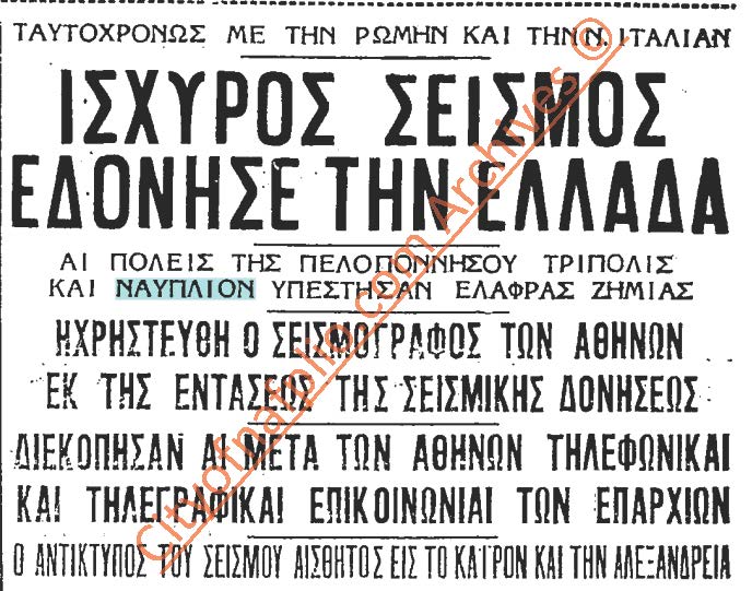 1962: Ισχυρή σεισμική δόνηση γίνεται αισθητή σε ολόκληρη την Ελλάδα και περισσότερο στην Κορινθία, στο Ναύπλιο και την Τρίπολη. Απολογισμός της είναι ένας νεκρός και πέντε τραυματίες, καθώς και υλικές ζημιές στην Κόρινθο.