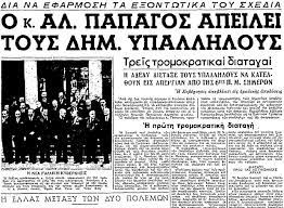 1944: Ο πρωθυπουργός της ελληνικής ελεύθερης κυβέρνησης, Γεώργιος Παπανδρέου, εισηγείται με τηλεγράφημά του προς τη βρετανική κυβέρνηση την αναγκαιότητα παρουσίας βρετανικών στρατευμάτων στην Ελλάδα, κατά την επικείμενη απελευθέρωση, προς αποτροπή εμφυλίου πολέμου.