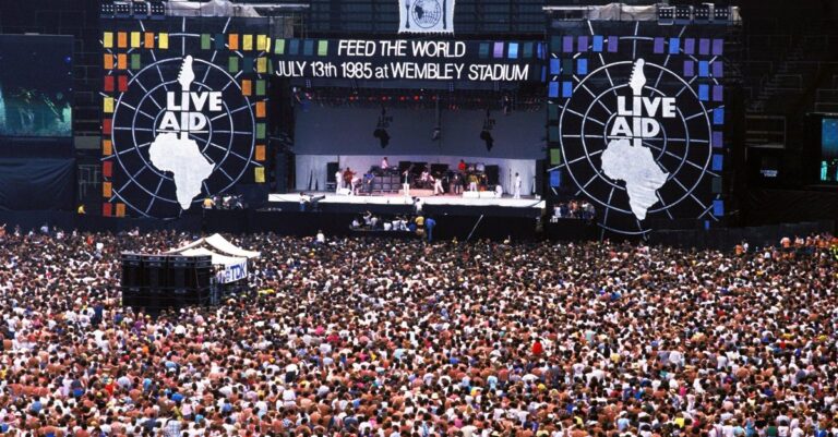 1985: Διεξάγεται ταυτόχρονα στη Φιλαδέλφεια και το Λονδίνο το κοντσέρτο με την επωνυμία «Live Aid», που ως σκοπό έχει να συγκεντρώσει την προσοχή του παγκόσμιου πληθυσμού, αλλά και χρήματα για τους λιμοκτονούντες κατοίκους της Αφρικής. Εμφανίζονται, μεταξύ άλλων, ο Μικ Τζάγκερ, η Τίνα Τάρνερ, η Μαντόνα, ο Μπομπ Nτίλαν και ο Πολ ΜακΚάρτνεϊ. «Ψυχή» της εκδήλωσης είναι ο τραγουδιστής των Boomtown Rats, Μπομπ Γκέλντοφ.
