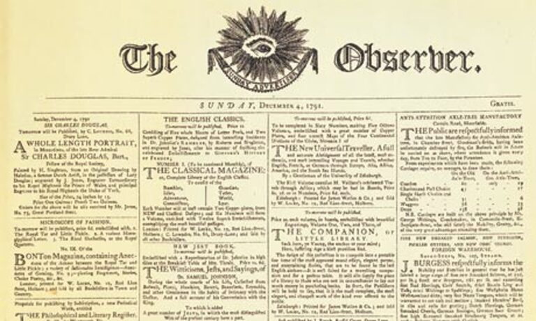 1791: Κυκλοφορεί το πρώτο φύλλο της βρετανικής εφημερίδας Observer. Πρόκειται για την πιο παλιά κυριακάτικη εφημερίδα στον κόσμο.