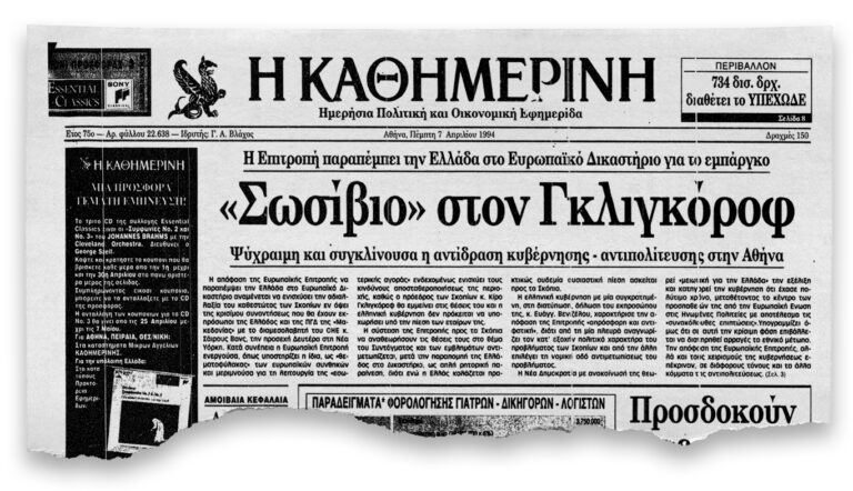 1994: Η Ελλάδα κηρύσσει μονομερές εμπάργκο στην ΠΓΔΜ, εξαιτίας του προβλήματος που ανέκυψε με την ονομασία της γειτονικής χώρας.