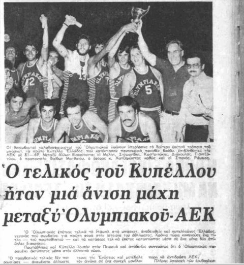 1976: Διεξάγεται στο κλειστό της Γλυφάδας ο πρώτος τελικός του Κυπέλλου Ελλάδας στο μπάσκετ Ανδρών. Το κατακτά o Ολυμπιακός, που νικά την ΑΕΚ με 81-69.