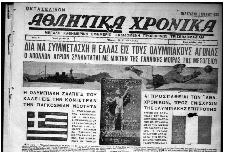 1932: Ολοκληρώνονται οι 10οι Ολυμπιακοί Αγώνες στο Λος Άντζελες, η διεξαγωγή των οποίων απειλήθηκε από το κραχ του 1929 στην Γουόλ Στρίτ και οι οποίοι συμπυκνώθηκαν σε 16 ημέρες (30/7-14/8).