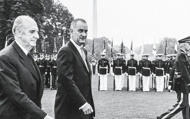 1964: Ο Έλληνας πρωθυπουργός, Γεώργιος Παπανδρέου, συναντάται στον Λευκό Οίκο με τον πρόεδροτων ΗΠΑ, Λίντον Τζόνσον, και ανθίσταται σθεναρά στις πιέσεις του τελευταίου να δεχτεί υποχωρήσεις στο Κυπριακό.