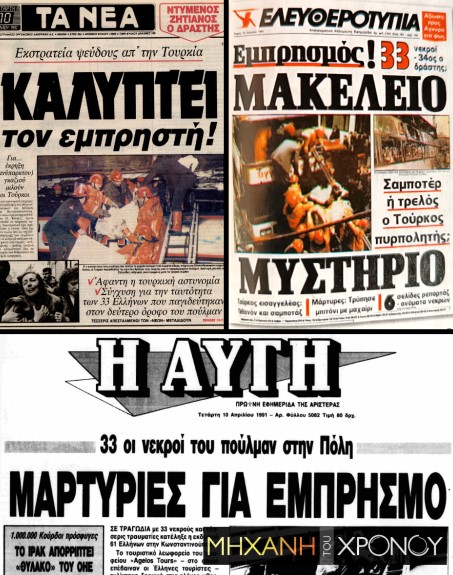 1991: Στην Κωνσταντινούπολη, εμπρηστική ενέργεια σε ελληνικό τουριστικό λεωφορείο προκαλεί το θάνατο 36 Ελλήνων εκδρομέων.