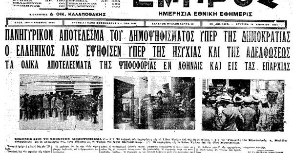 1924: Διεξάγεται δημοψήφισμα για το πολίτευμα στην Ελλάδα. Με ποσοστό 69,95%, οι Έλληνες τάσσονται υπέρ της Αβασίλευτης Δημοκρατίας.