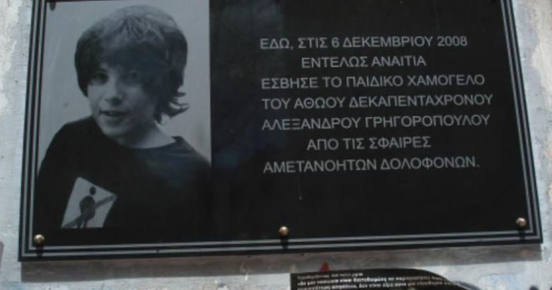 2008: Ο ειδικός φρουρός, Επαμεινώνδας Κορκονέας, πυροβολεί και δολοφονεί τον 15χρονο μαθητή, Αλέξανδρο Γρηγορόπουλο, στα Εξάρχεια. Μετά τη δολοφονία εκτεταμένες συγκρούσεις ξεσπούν σε όλη τη χώρα.