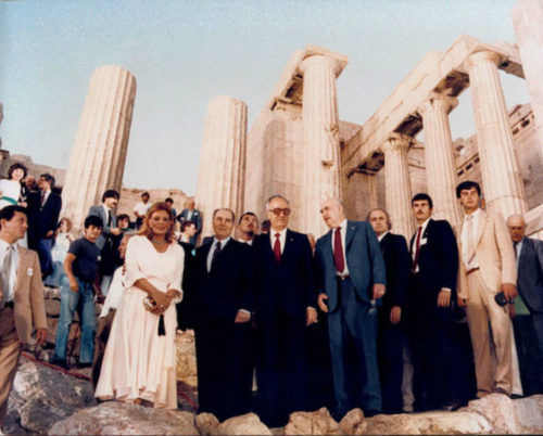 1985: Η Αθήνα ανακηρύσσεται πρώτη «Πολιτιστική Πρωτεύουσα της Ευρώπης», όπου και πραγματοποιείται μεγάλη φιέστα γύρω από τον Βράχο της Ακρόπολης (Παρθενώνα, Ηρώδειο, και Στοά του Αττάλου). Στην εορτή αυτή, σύγχρονη αμφικτιονία όπως χαρακτηρίστηκε από τον πρωθυπουργό, συμμετείχαν οι Χρήστος Σαρτζετάκης, Φρανσουά Μιτεράν, Ανδρέας Παπανδρέου, Κωνσταντίνος Μητσοτάκης, σύσσωμο το Υπουργικό Συμβούλιο, ξένοι υπουργοί πολιτισμού, διπλωματικές αντιπροσωπείες και εκπρόσωποι του Συμβουλίου της Ευρώπης. 500 αγόρια και κορίτσια ψέλνουν τον «Ύμνο στον Ήλιο» (του Μεσομήδη, 2ος αιών μ.Χ.).