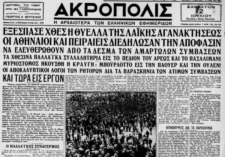 1932: Δύο μήνες μετά τη χρεωκοπία της Ελλάδας διοργανώνεται συλλαλητήριο στο Πεδίον του Άρεως ενάντια στις αυξήσεις των τιμών του ηλεκτρικού ρεύματος και του νερού. Η Χωροφυλακή επιτίθεται στους συγκεντρωμένους και αρχίζουν συγκρούσεις που επεκτείνονται σε όλη τη γύρω περιοχή.