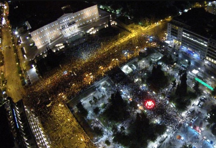 2015: Πανηγυρικό ήταν το κλίμα στο Σύνταγμα και την πλατεία Κλαυθμώνος μετά τη συντριπτική επικράτηση του «Όχι» στο δημοψήφισμα στις 5 Ιουλίου. Αναλυτικότερα, και σύμφωνα με τα τελικά αποτελέσματα του υπουργείου Εσωτερικών, «Όχι» ψήφισαν 3.558.450 ψηφοφόροι δηλαδή το 61,31%. Αντίθετα, 2.245.537 ψηφοφόροι, δηλαδή ποσοστό 38,69%, ψήφισαν «Ναι». Το εκλογικό σώμα κλήθηκε να απαντήσει αν εγκρίνει ή απορρίπτει την πρόταση των δανειστών της 25ης Ιουνίου 2015, η οποία προκάλεσε και την αποχώρηση της κυβέρνησης από τις διαπραγματεύσεις. Υπέρ του «ΟΧΙ» τάχθηκαν ο ΣΥΡΙΖΑ, οι ΑΝΕΛ και η Χρυσή Αυγή, ενώ υπέρ του «ΝΑΙ» η Νέα Δημοκρατία, το Ποτάμι και το ΠΑΣΟΚ. ΤΟ ΚΚΕ προέτρεψε τους ψηφοφόρους να ρίξουν άκυρο.
