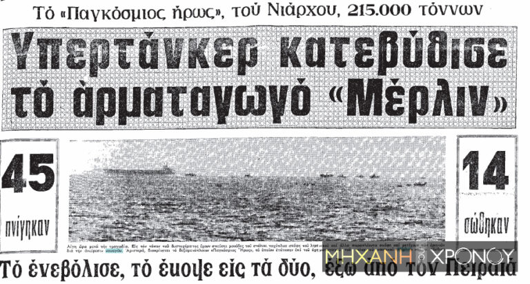 1972: Το δεξαμενόπλοιο «Παγκόσμιος Ήρωας», ιδιοκτησίας του ομίλου Νιάρχου, συγκρούεται με το οχηματαγωγό του Πολεμικού Ναυτικού «Μέρλιν» μέσα στον Φαληρικό Όρμο και μόλις 5 μίλια έξω από την είσοδο του λιμένα του Πειραιά. Το οχηματαγωγό βυθίζεται, παρασύροντας στο θάνατο τα 44 από τα 58 μέλη του πληρώματος.