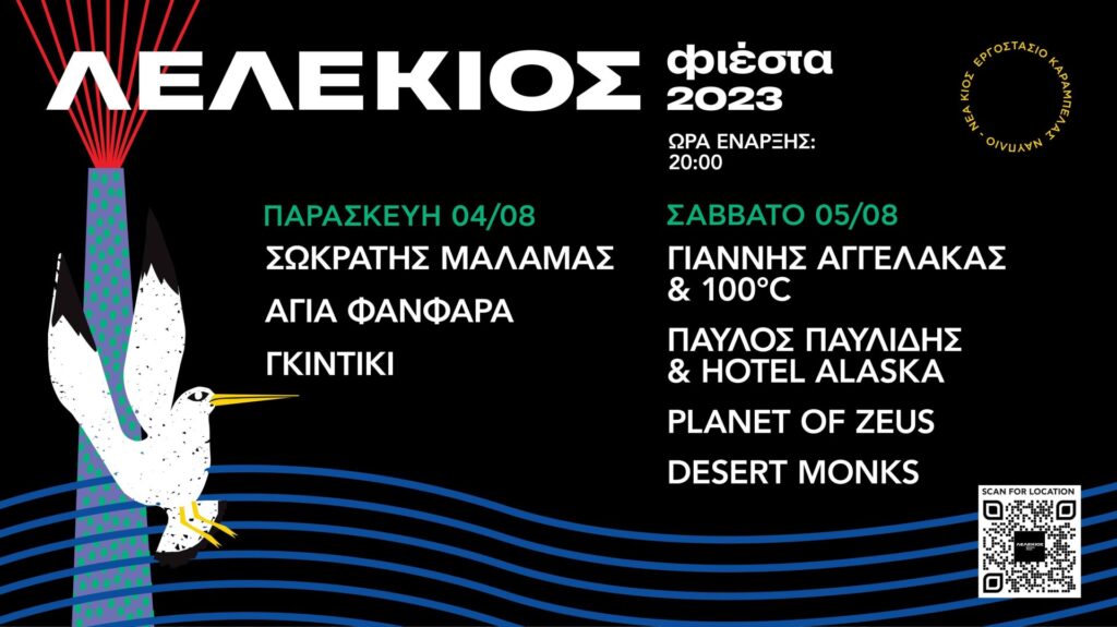 Η 6ηΛελέΚιος Φιέστα διοργανώνεται την Παρασκευή 04 και το Σάββατο 05 Αυγούστου, στην παραλιακή οδό Ναυπλίου – Νέας Κίου. Την Παρασκευή Σωκράτης Μάλαμας με την υπέροχη Ιουλία Καραπατάκη, συναντούν τους Γκιντίκι και την «χάλκινη» υπερ–κολεκτίβα Αγία Φανφάρα σε μία βραδιά που θα χορέψουμε με την ψυχή μας! Το Σάββατο η ένταση ανεβαίνει με καταιγιστικό Γιάννη […]