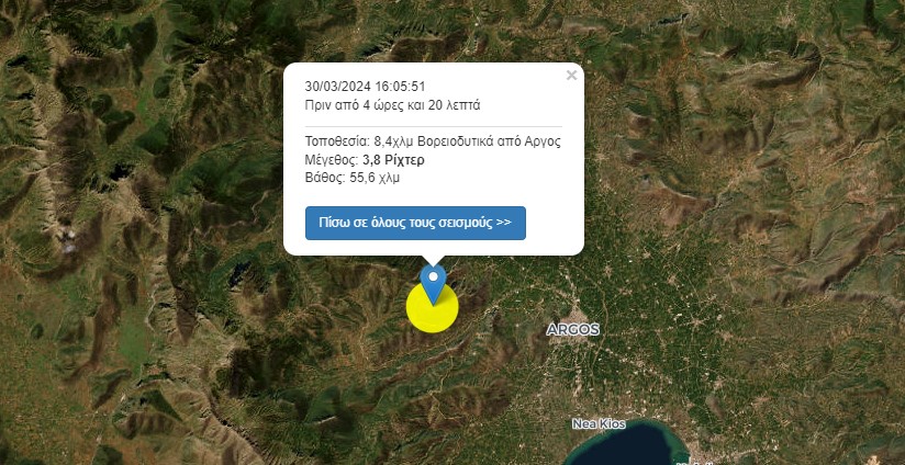 Σεισμός 3,8 ρίχτερ κοντά στο Άργος
