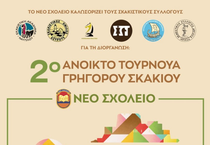 Ο Εκπαιδευτικός Όμιλος Αργολίδας και οι σκακιστικοί σύλλογοι της ευρύτερης περιοχής, σας προσκαλούν όλους, μικρούς και μεγάλους στον χώρο του Νέου Σχολείου στην περιοχή Δαλαμανάρα, για ένα απόγευμα γεμάτο με σκάκι, χαμόγελα και κέφι. Το τελευταίο τουρνουά γρήγορου χρόνου της φετινής σχολικής χρονιάς, απευθύνεται σε όλες τις ηλικίες, με ξεχωριστό όμιλο ακόμα και για τα […]